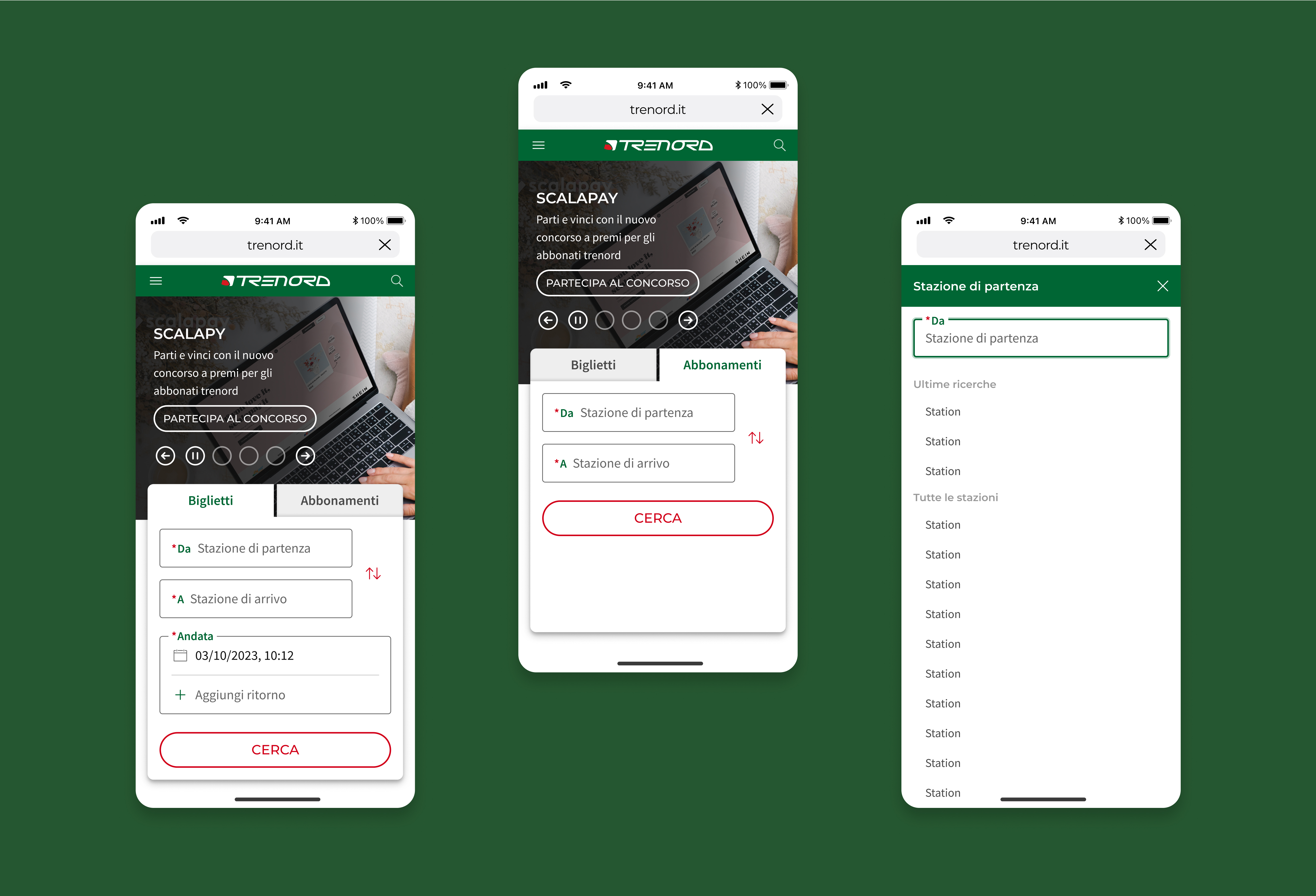 Throughout my professional experience, I have had the privilege of acting as the lead UX/UI designer for one of my company's prominent clients: Trenord, the main railway service company in Lombardy Italy. In this role, I was tasked with orchestrating and curating the user experience across all customer digital touchpoints, from web to mobile app, ensuring consistency and quality at every stage of the journey by elevating usability, accessibility and fostering user engagement.